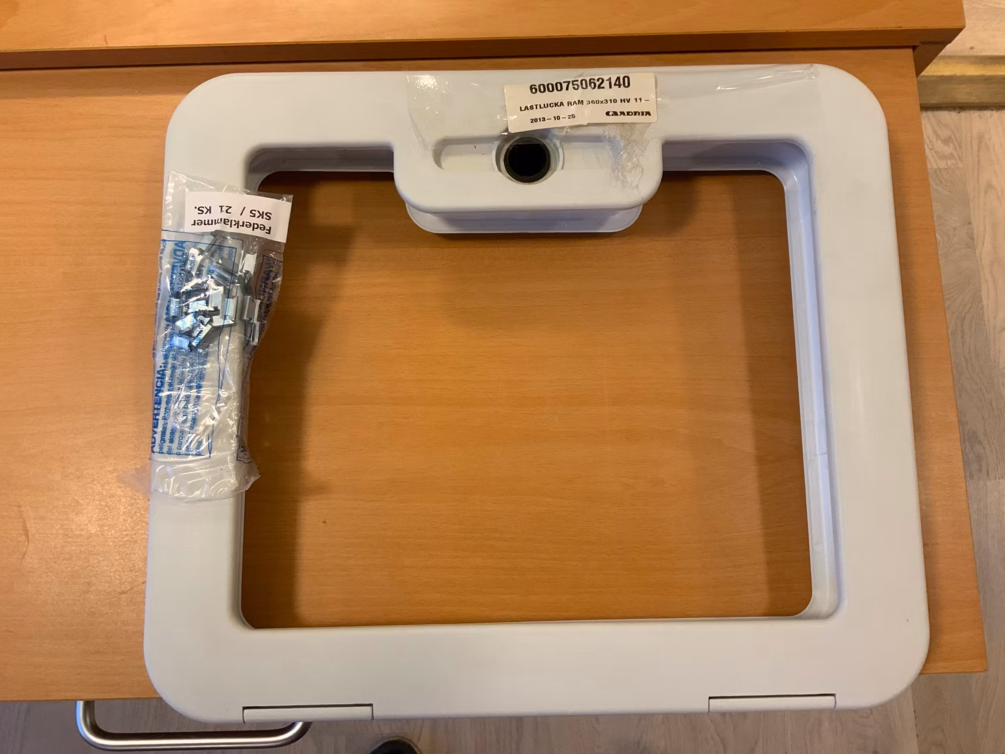 Ytterkollen 38 x 33 cm.Låssylinder følger ikke medRammen er NY med klammer.
